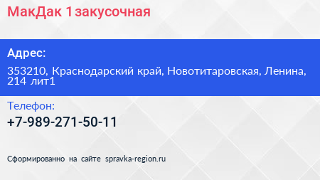 МакДак №1, закусочная по адресу 353210, Краснодарский край, Новотитаровская, Ленина, 214 лит1 в дальнейшем Организация, размещена в следующих категориях:
