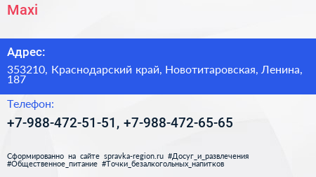 Maxi по адресу 353210, Краснодарский край, Новотитаровская, Ленина, 187 в дальнейшем Организация, размещена в следующих категориях:
