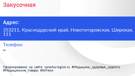 Закусочная по адресу 353211, Краснодарский край, Новотитаровская, Широкая, 111 в дальнейшем Организация, размещена в следующих категориях: