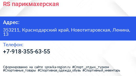 RS, парикмахерская по адресу 353211, Краснодарский край, Новотитаровская, Ленина, 13 в дальнейшем Организация, размещена в следующих категориях: