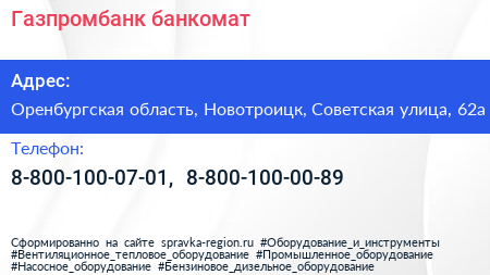 Газпромбанк, банкомат по адресу Оренбургская область, Новотроицк, Советская улица, 62а в дальнейшем Организация, размещена в следующих категориях: