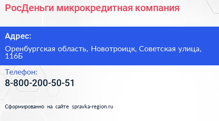 РосДеньги, микрокредитная компания по адресу Оренбургская область, Новотроицк, Советская улица, 116Б в дальнейшем Организация, размещена в следующих категориях: