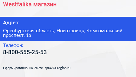 Westfalika, магазин по адресу Оренбургская область, Новотроицк, Комсомольский проспект, 1а в дальнейшем Организация, размещена в следующих категориях: