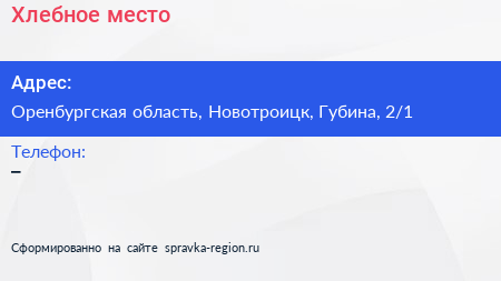 Хлебное место по адресу Оренбургская область, Новотроицк, Губина, 2/1 в дальнейшем Организация, размещена в следующих категориях: