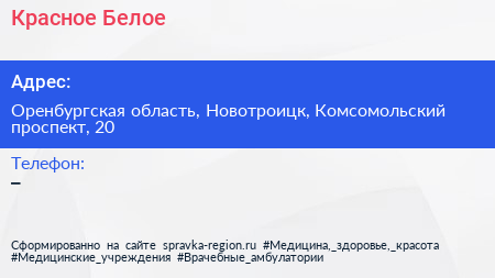 Красное & Белое по адресу Оренбургская область, Новотроицк, Комсомольский проспект, 20 в дальнейшем Организация, размещена в следующих категориях: