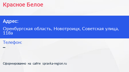 Красное & Белое по адресу Оренбургская область, Новотроицк, Советская улица, 118а в дальнейшем Организация, размещена в следующих категориях: