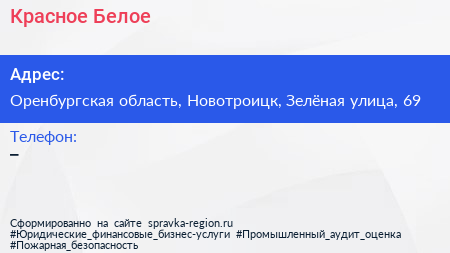 Красное & Белое по адресу Оренбургская область, Новотроицк, Зелёная улица, 69 в дальнейшем Организация, размещена в следующих категориях: