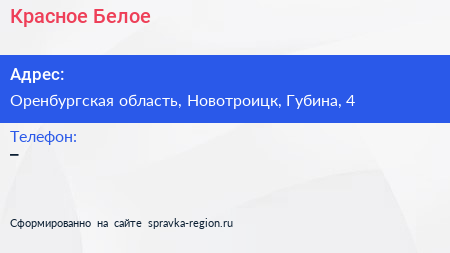 Красное & Белое по адресу Оренбургская область, Новотроицк, Губина, 4 в дальнейшем Организация, размещена в следующих категориях: