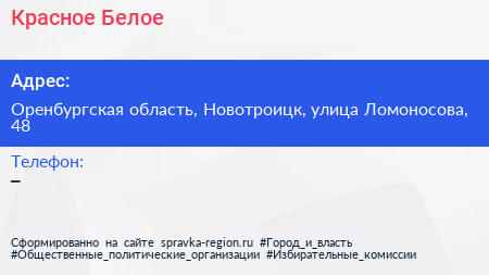 Красное & Белое по адресу Оренбургская область, Новотроицк, улица Ломоносова, 48 в дальнейшем Организация, размещена в следующих категориях: