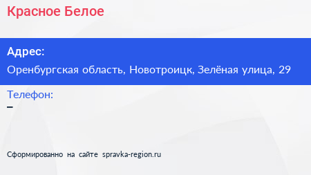 Красное & Белое по адресу Оренбургская область, Новотроицк, Зелёная улица, 29 в дальнейшем Организация, размещена в следующих категориях: