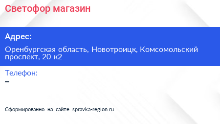 Светофор, магазин по адресу Оренбургская область, Новотроицк, Комсомольский проспект, 20 к2 в дальнейшем Организация, размещена в следующих категориях: