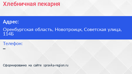 Хлебничная, пекарня по адресу Оренбургская область, Новотроицк, Советская улица, 114Б в дальнейшем Организация, размещена в следующих категориях: