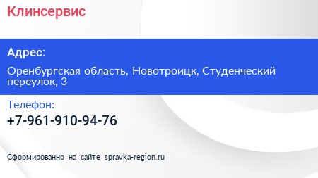 Клинсервис по адресу Оренбургская область, Новотроицк, Студенческий переулок, 3 в дальнейшем Организация, размещена в следующих категориях: