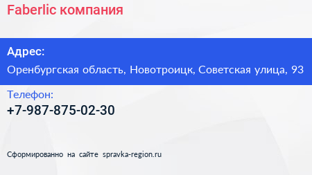 Faberlic, компания по адресу Оренбургская область, Новотроицк, Советская улица, 93 в дальнейшем Организация, размещена в следующих категориях: