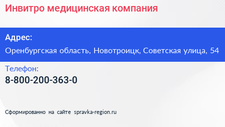 Инвитро, медицинская компания по адресу Оренбургская область, Новотроицк, Советская улица, 54 в дальнейшем Организация, размещена в следующих категориях: