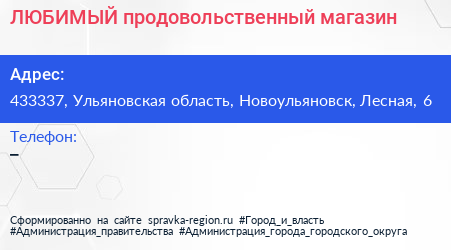 ЛЮБИМЫЙ, продовольственный магазин по адресу 433337, Ульяновская область, Новоульяновск, Лесная, 6 в дальнейшем Организация, размещена в следующих категориях: