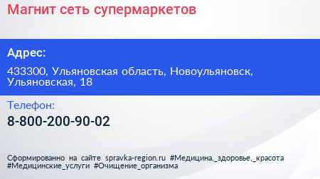 Магнит, сеть супермаркетов по адресу 433300, Ульяновская область, Новоульяновск, Ульяновская, 18 в дальнейшем Организация, размещена в следующих категориях:
