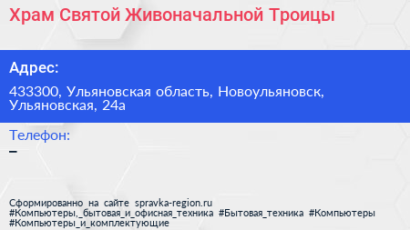Храм Святой Живоначальной Троицы по адресу 433300, Ульяновская область, Новоульяновск, Ульяновская, 24а в дальнейшем Организация, размещена в следующих категориях: