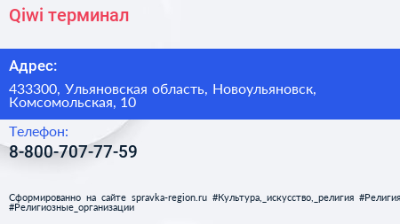 Qiwi, терминал по адресу 433300, Ульяновская область, Новоульяновск, Комсомольская, 10 в дальнейшем Организация, размещена в следующих категориях: