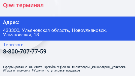 Qiwi, терминал по адресу 433300, Ульяновская область, Новоульяновск, Ульяновская, 18 в дальнейшем Организация, размещена в следующих категориях: