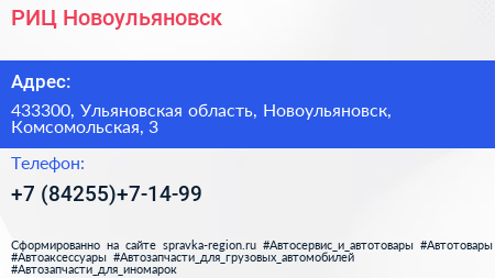 РИЦ-Новоульяновск по адресу 433300, Ульяновская область, Новоульяновск, Комсомольская, 3 в дальнейшем Организация, размещена в следующих категориях: