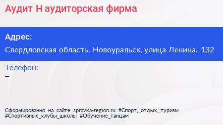 Аудит-Н, аудиторская фирма по адресу Свердловская область, Новоуральск, улица Ленина, 132 в дальнейшем Организация, размещена в следующих категориях: