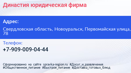 Династия, юридическая фирма по адресу Свердловская область, Новоуральск, Первомайская улица, 78 в дальнейшем Организация, размещена в следующих категориях: