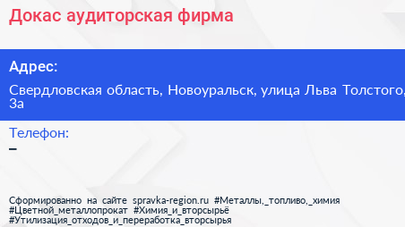 Докас, аудиторская фирма по адресу Свердловская область, Новоуральск, улица Льва Толстого, 3а в дальнейшем Организация, размещена в следующих категориях: