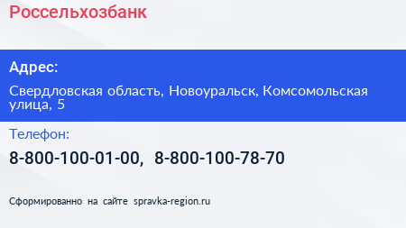 Россельхозбанк по адресу Свердловская область, Новоуральск, Комсомольская улица, 5 в дальнейшем Организация, размещена в следующих категориях: