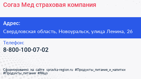 Согаз-Мед, страховая компания по адресу Свердловская область, Новоуральск, улица Ленина, 26 в дальнейшем Организация, размещена в следующих категориях: