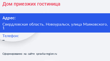 Дом приезжих, гостиница по адресу Свердловская область, Новоуральск, улица Маяковского, 1 в дальнейшем Организация, размещена в следующих категориях: