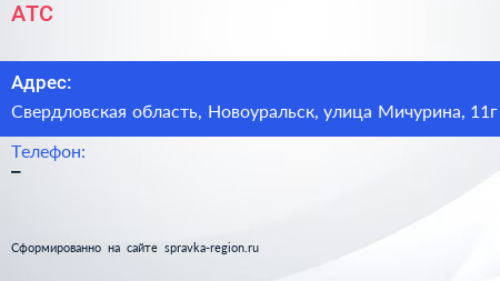 АТС по адресу Свердловская область, Новоуральск, улица Мичурина, 11г в дальнейшем Организация, размещена в следующих категориях: