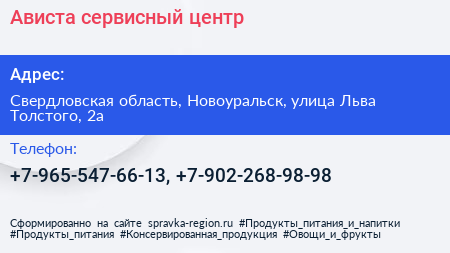 Ависта, сервисный центр по адресу Свердловская область, Новоуральск, улица Льва Толстого, 2а в дальнейшем Организация, размещена в следующих категориях: