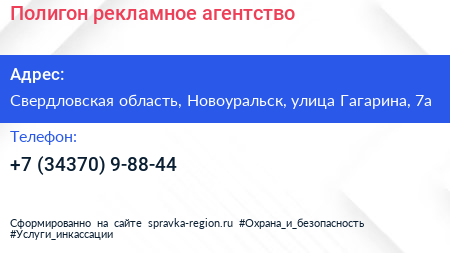 Полигон, рекламное агентство по адресу Свердловская область, Новоуральск, улица Гагарина, 7а в дальнейшем Организация, размещена в следующих категориях: