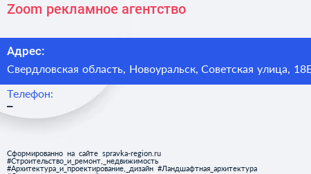 Zoom, рекламное агентство по адресу Свердловская область, Новоуральск, Советская улица, 18Б в дальнейшем Организация, размещена в следующих категориях: