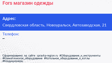 Fors, магазин одежды по адресу Свердловская область, Новоуральск, Автозаводская, 21 в дальнейшем Организация, размещена в следующих категориях:
