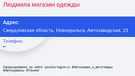 Людмила, магазин одежды по адресу Свердловская область, Новоуральск, Автозаводская, 21 в дальнейшем Организация, размещена в следующих категориях: