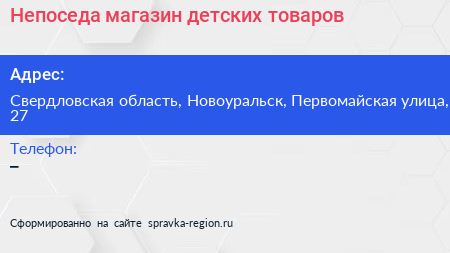 Непоседа, магазин детских товаров по адресу Свердловская область, Новоуральск, Первомайская улица, 27 в дальнейшем Организация, размещена в следующих категориях: