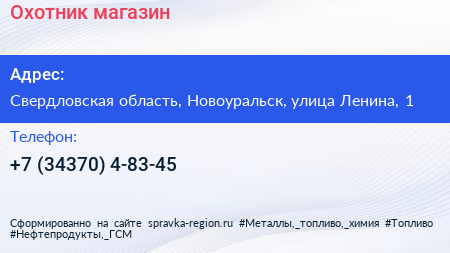 Охотник, магазин по адресу Свердловская область, Новоуральск, улица Ленина, 1 в дальнейшем Организация, размещена в следующих категориях: