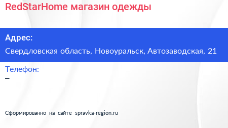 RedStarHome, магазин одежды по адресу Свердловская область, Новоуральск, Автозаводская, 21 в дальнейшем Организация, размещена в следующих категориях:
