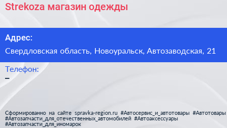 Strekoza, магазин одежды по адресу Свердловская область, Новоуральск, Автозаводская, 21 в дальнейшем Организация, размещена в следующих категориях: