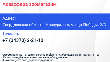 Аквасфера, зоомагазин по адресу Свердловская область, Новоуральск, улица Победы, 2/3 в дальнейшем Организация, размещена в следующих категориях: