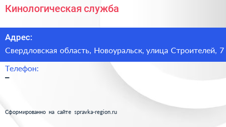 Кинологическая служба по адресу Свердловская область, Новоуральск, улица Строителей, 7 в дальнейшем Организация, размещена в следующих категориях: