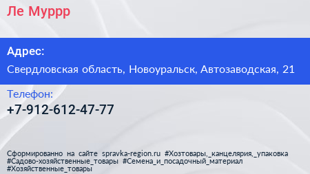 Ле`Муррр по адресу Свердловская область, Новоуральск, Автозаводская, 21 в дальнейшем Организация, размещена в следующих категориях: