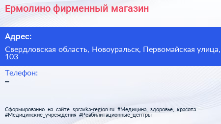Ермолино, фирменный магазин по адресу Свердловская область, Новоуральск, Первомайская улица, 103 в дальнейшем Организация, размещена в следующих категориях: