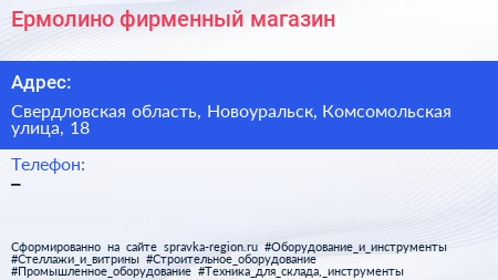 Ермолино, фирменный магазин по адресу Свердловская область, Новоуральск, Комсомольская улица, 18 в дальнейшем Организация, размещена в следующих категориях: