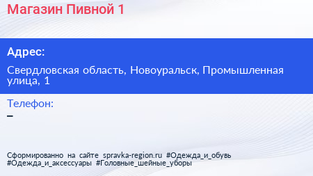 Магазин Пивной №1 по адресу Свердловская область, Новоуральск, Промышленная улица, 1 в дальнейшем Организация, размещена в следующих категориях:
