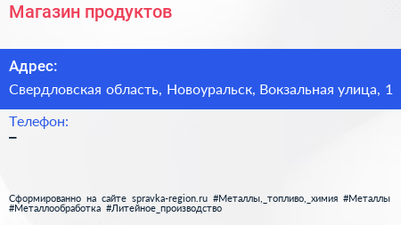 Магазин продуктов по адресу Свердловская область, Новоуральск, Вокзальная улица, 1 в дальнейшем Организация, размещена в следующих категориях: