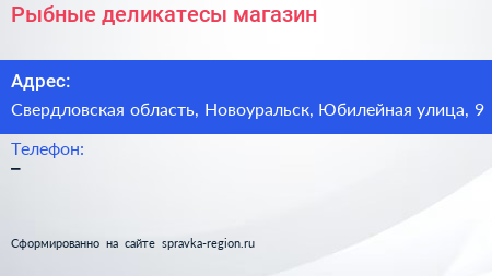 Рыбные деликатесы, магазин по адресу Свердловская область, Новоуральск, Юбилейная улица, 9 в дальнейшем Организация, размещена в следующих категориях: