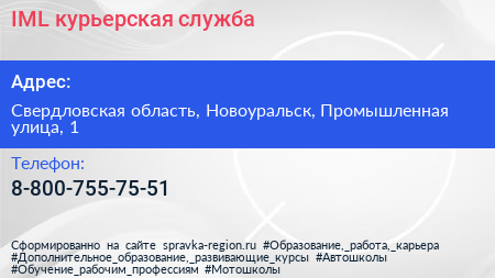 IML, курьерская служба по адресу Свердловская область, Новоуральск, Промышленная улица, 1 в дальнейшем Организация, размещена в следующих категориях: